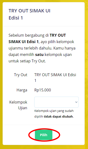 Pilih “Paket Eksklusif Try Out Online Simak UI”